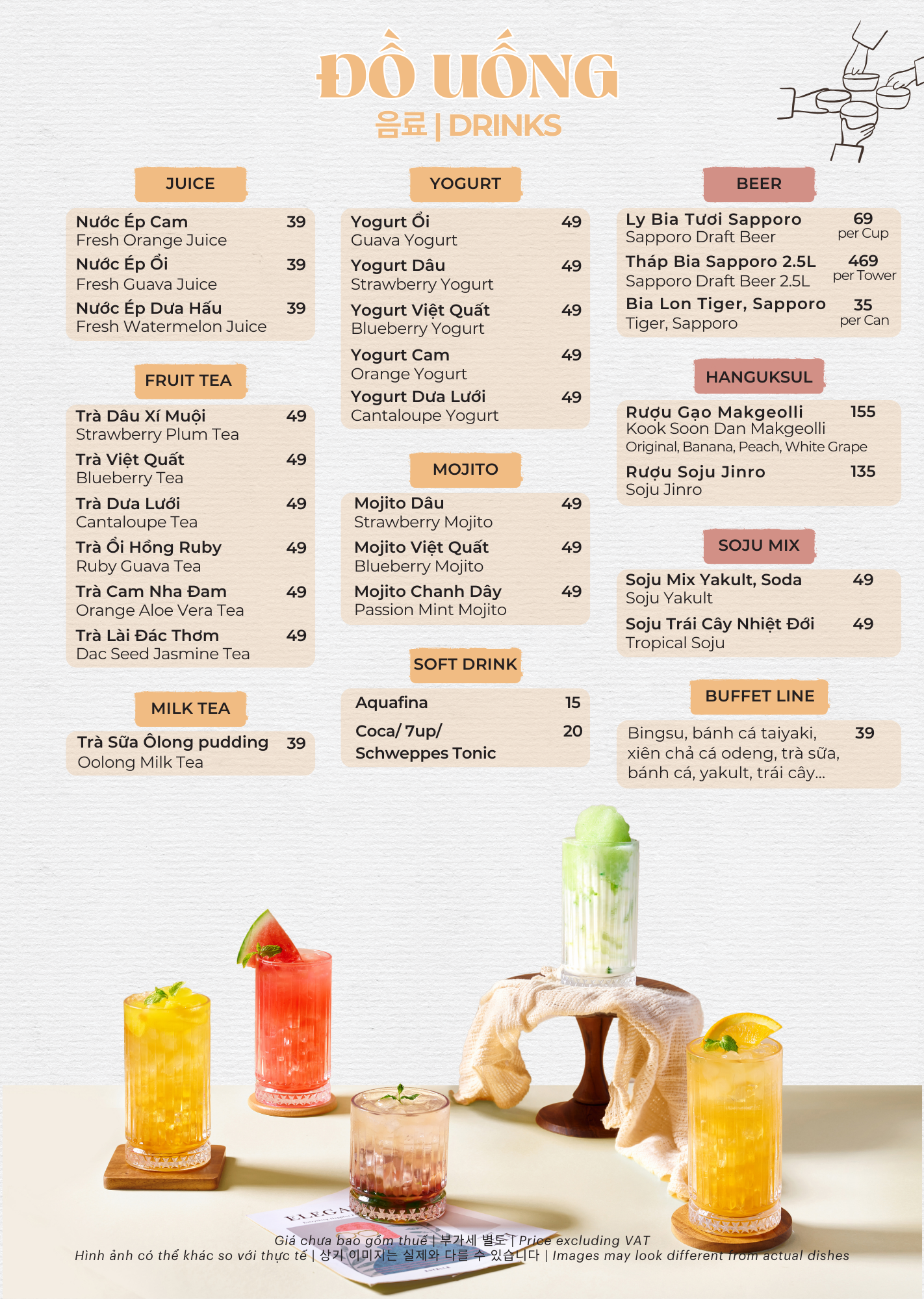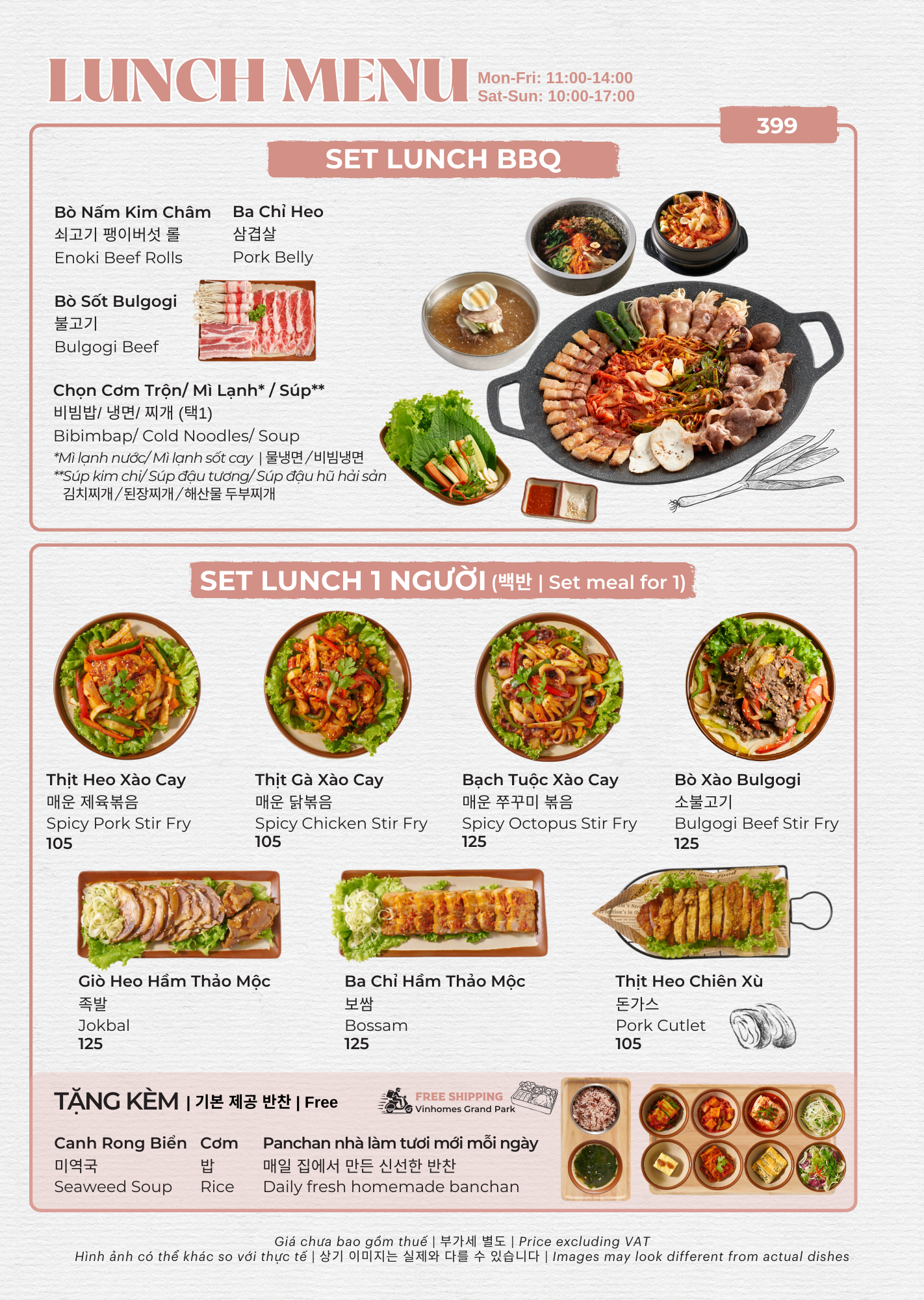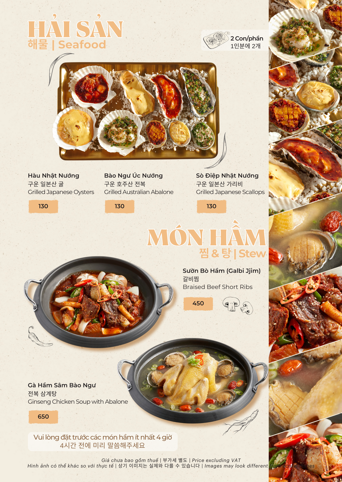 Thưởng thức món ăn và thịt nướng Hàn Quốc chuẩn vị trong một không gian tinh tế, thoải mái và thân thiện. Nơi mà mọi khách hàng đều có thể tìm thấy niềm vui và sự hài lòng trong bữa ăn.